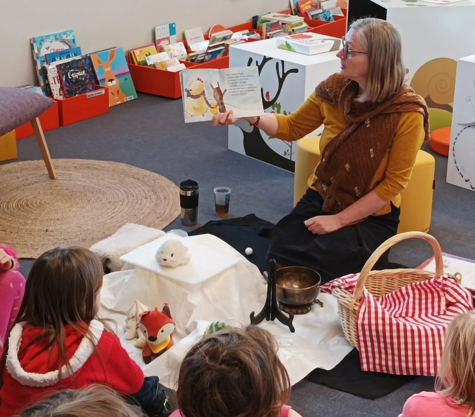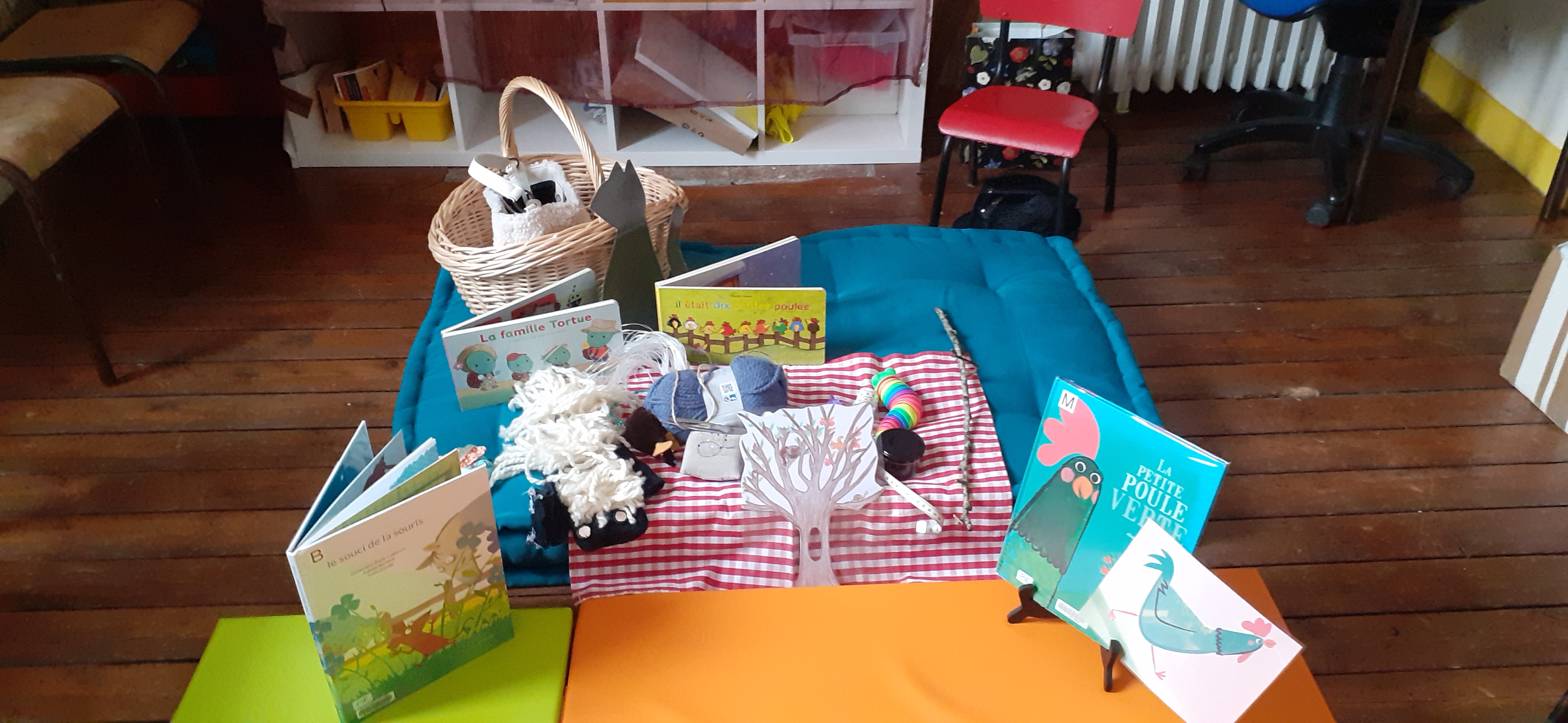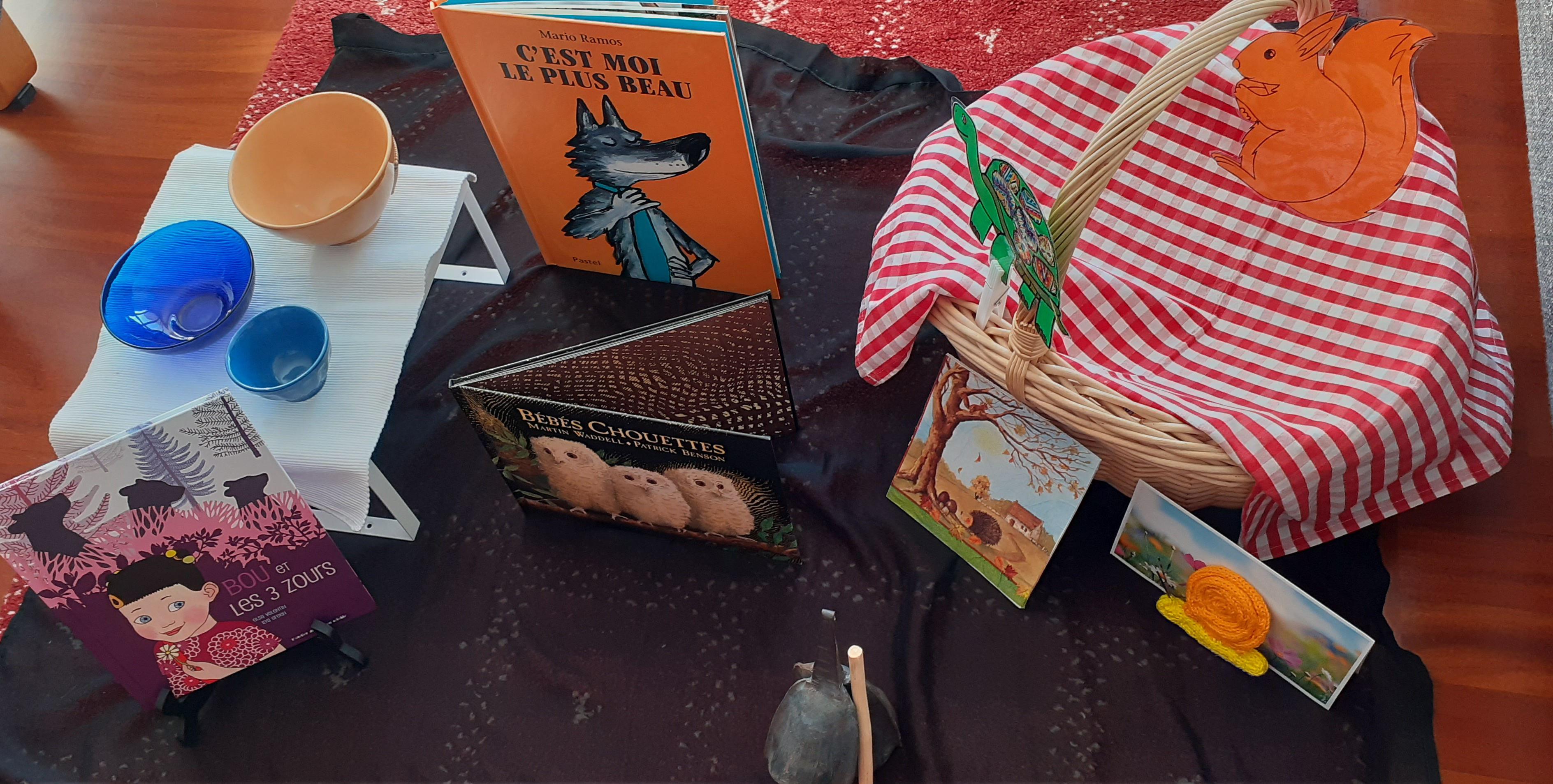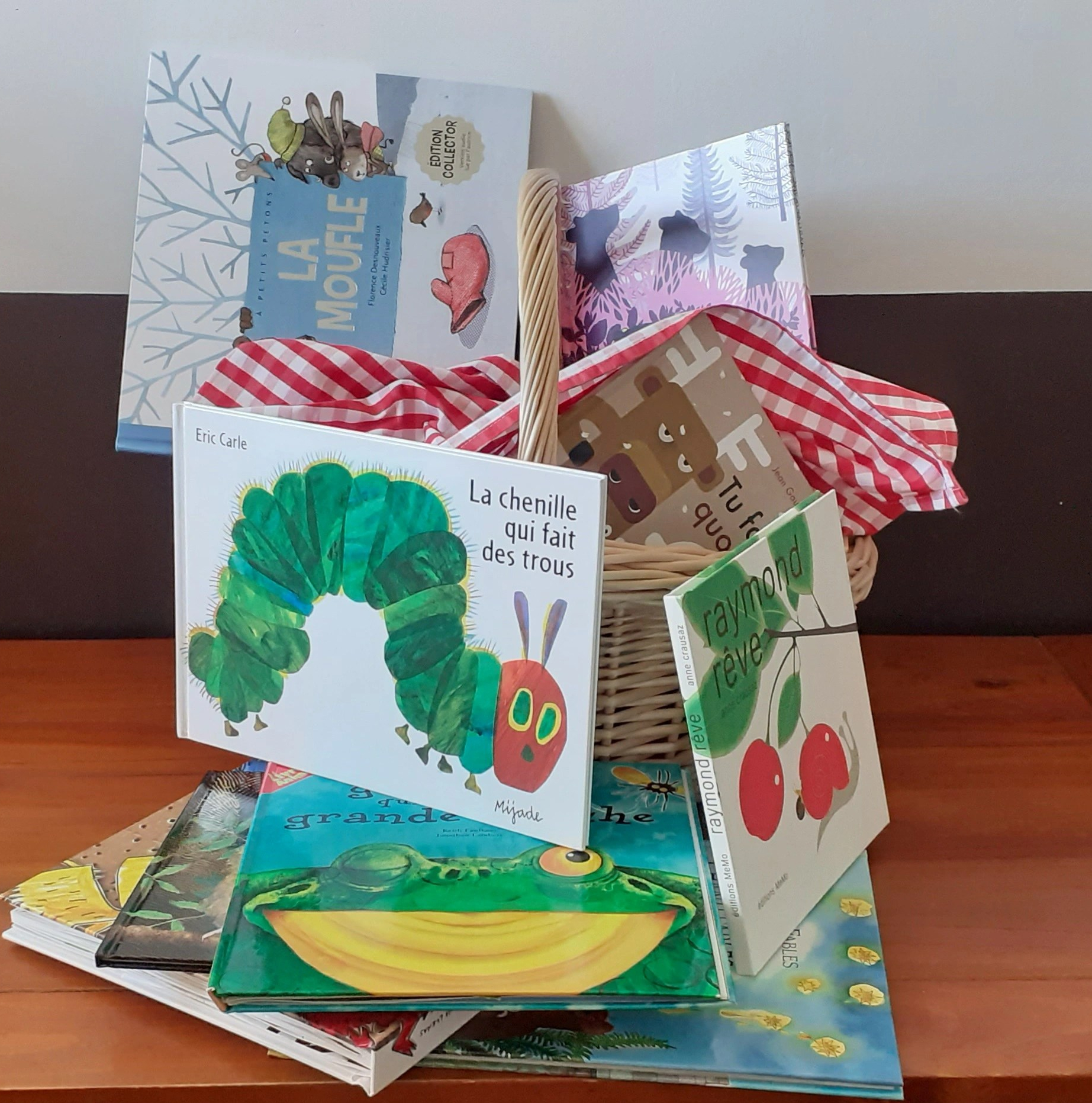 J’arrive comme pour un pique-nique, je m’installe au sol sur un tapis, et aux beaux jours, le panier peut même être posé sur un coin d’herbe. Dans le panier de Lili, il y a des livres pour les enfants, bien sûr, mais aussi des surprises à découvrir tout au long de la séance.