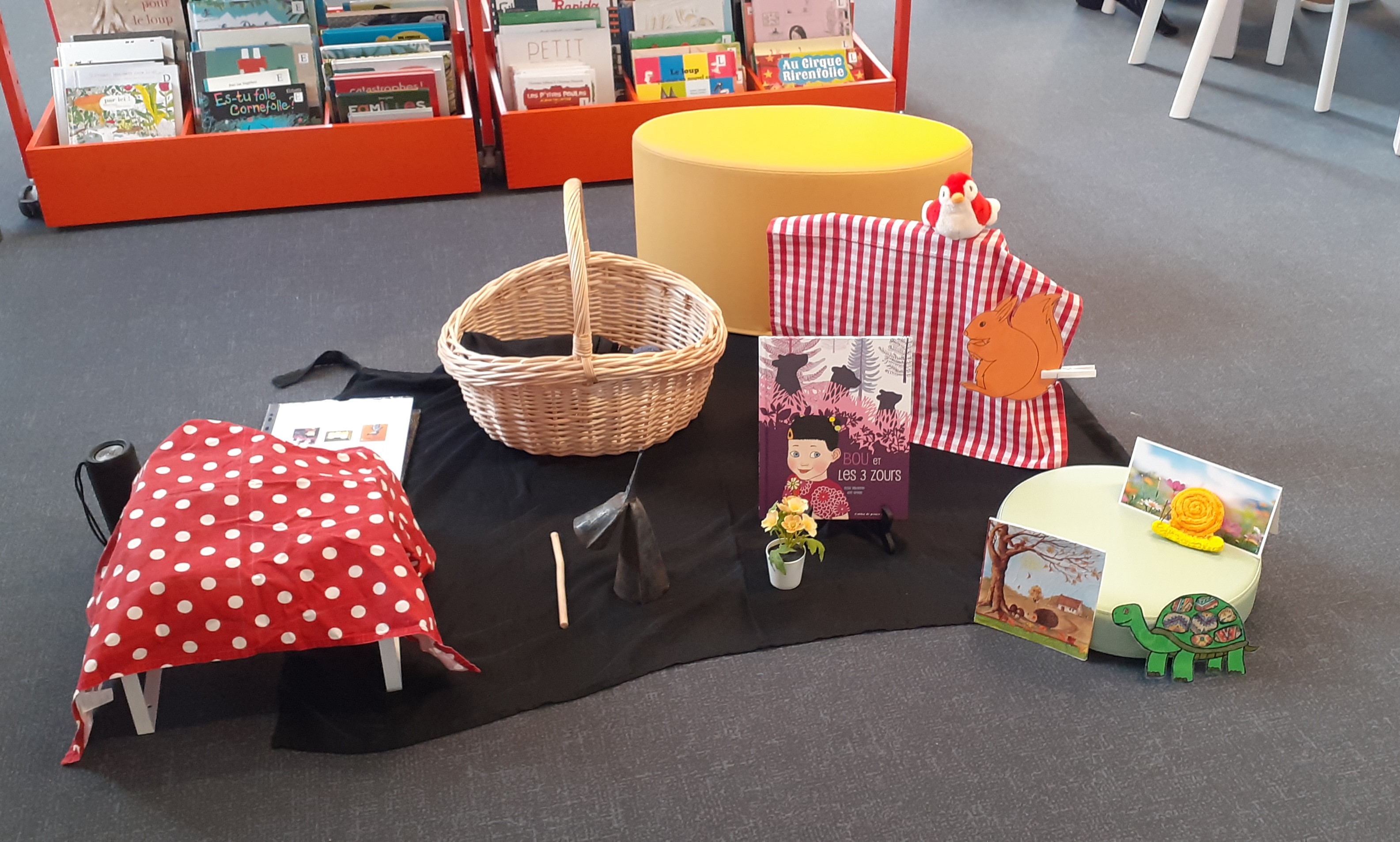 Je viens avec mon panier, j’aménage un espace (au minimum 1,50 m X 2m) et c’est parti pour les histoires. Vous pouvez me demander un thème.